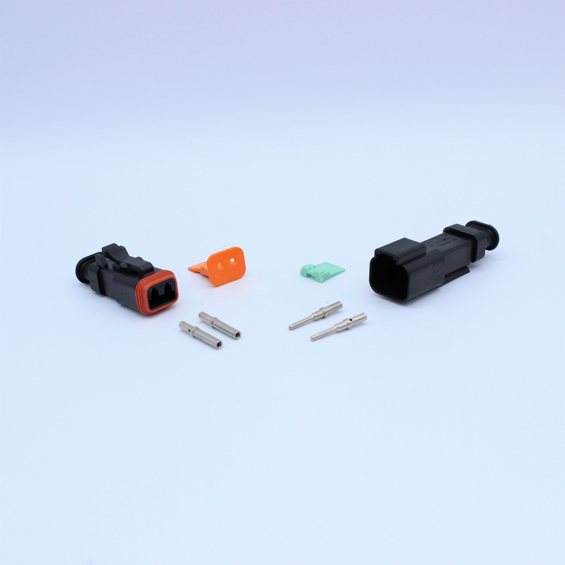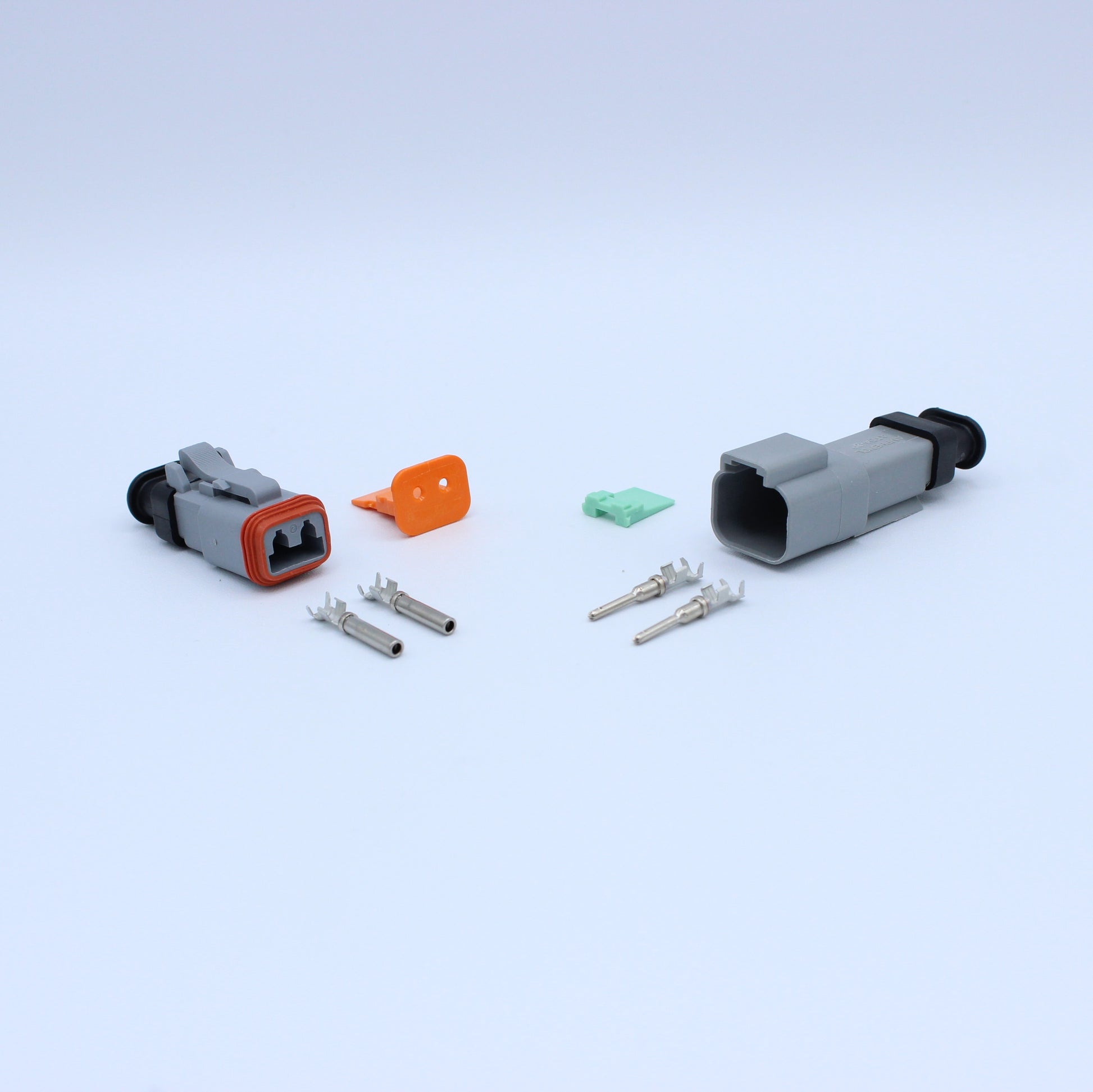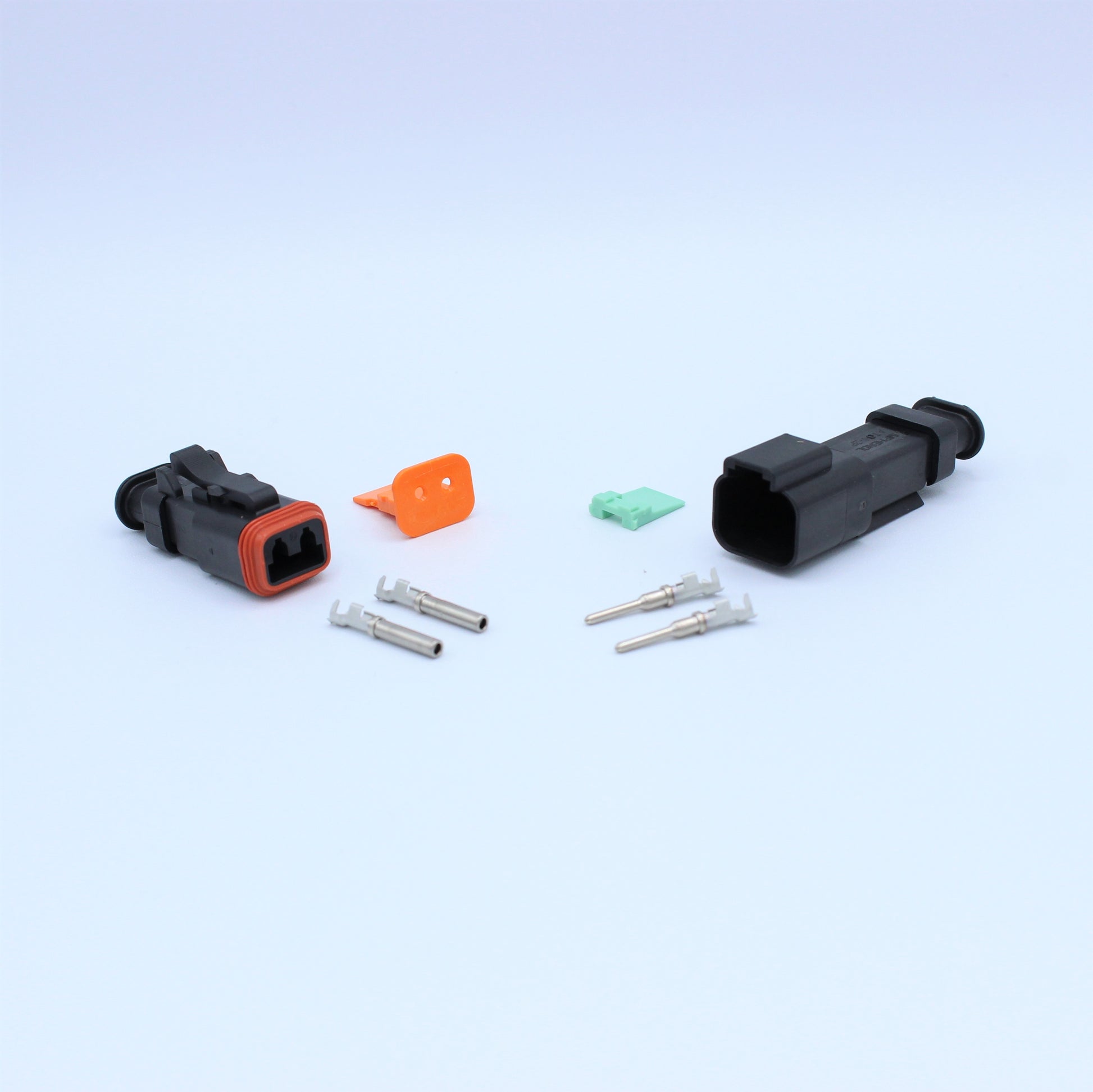 The standard in aftermarket universal application connectors is Deutsch DT or Amphenol AT. They are completely interchangeable, and our kits use a mix only authentic products of both lines to offer the best combinations.