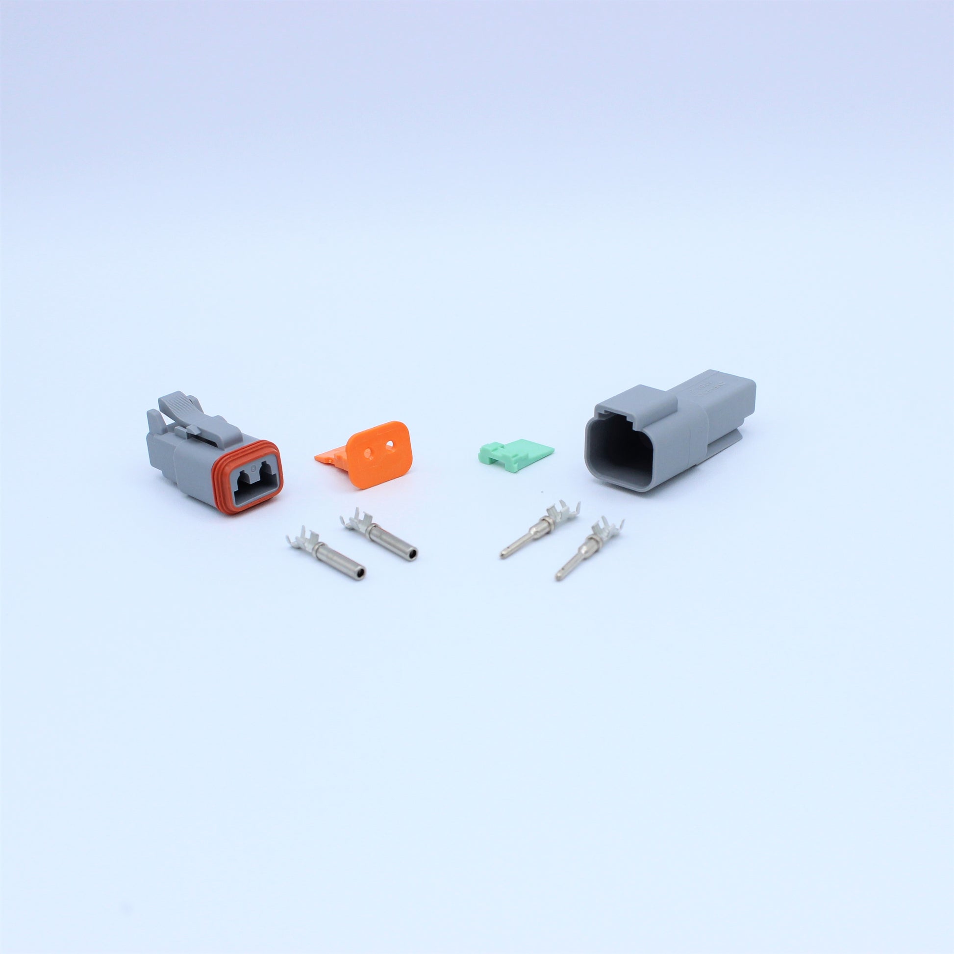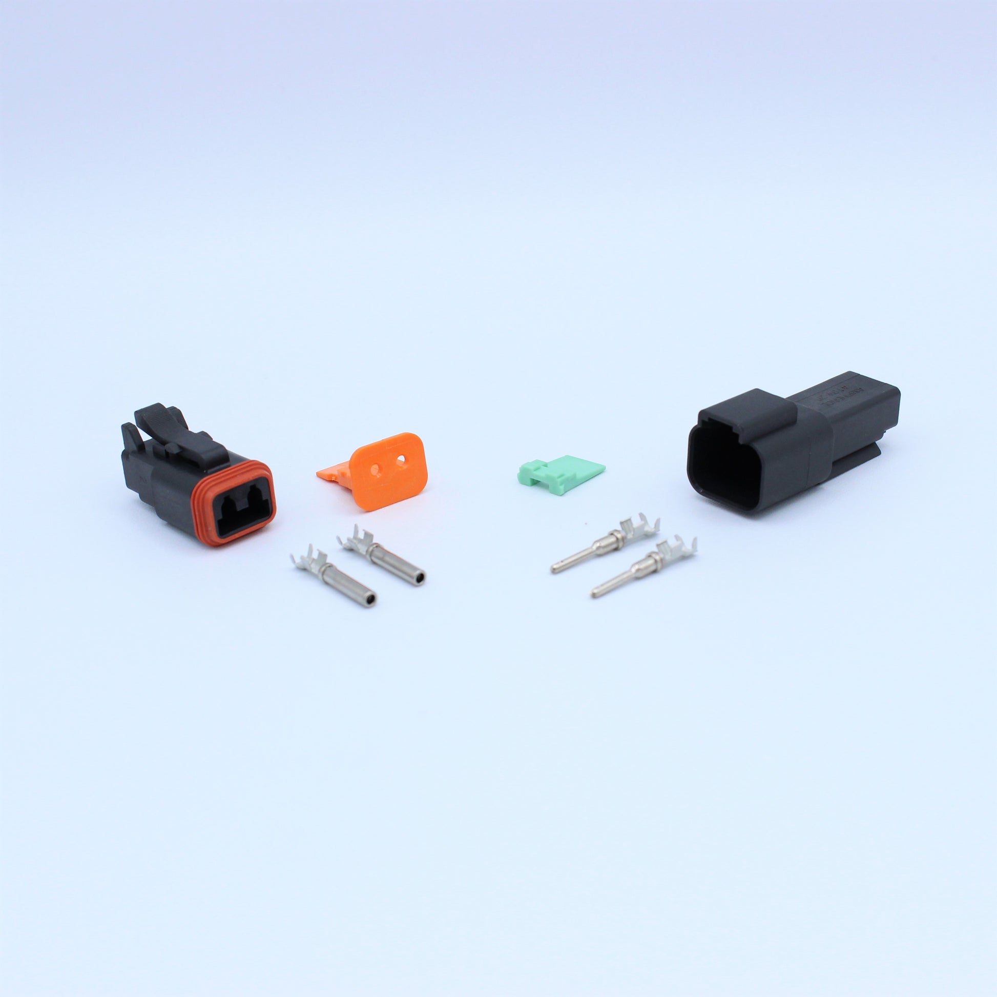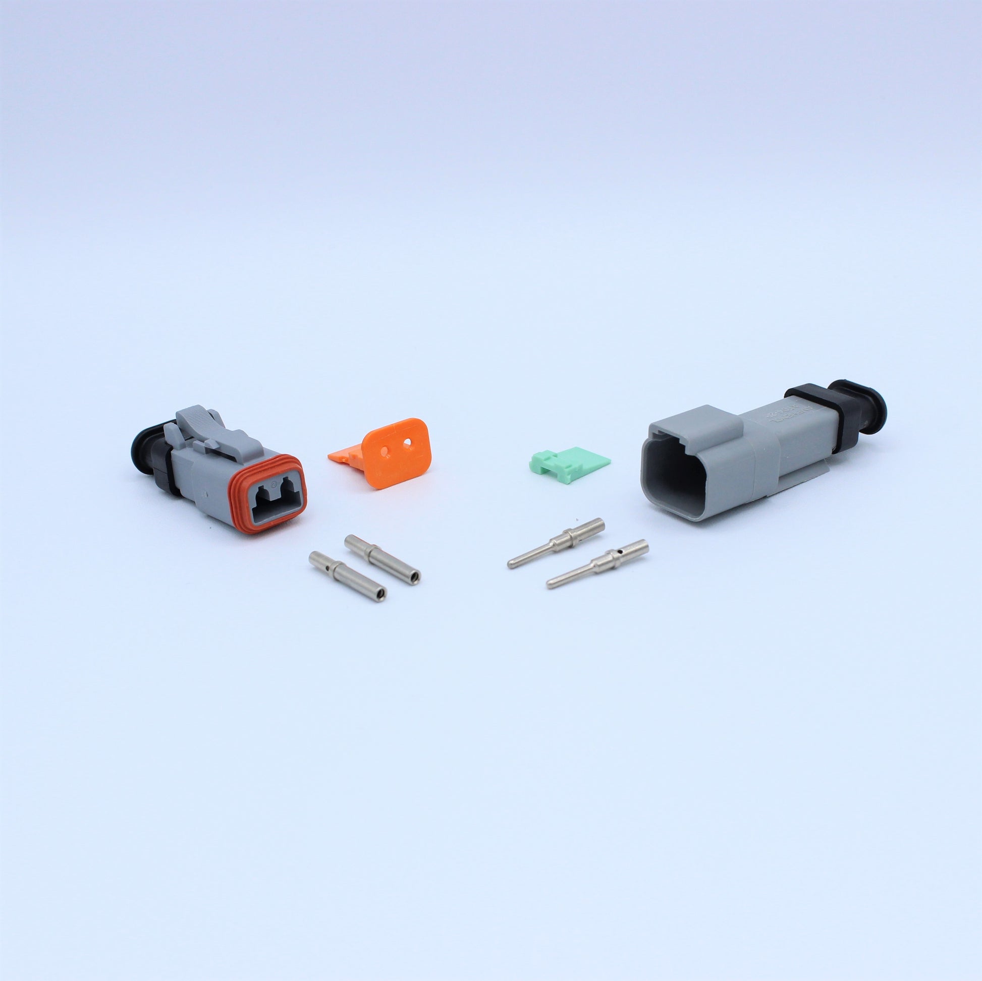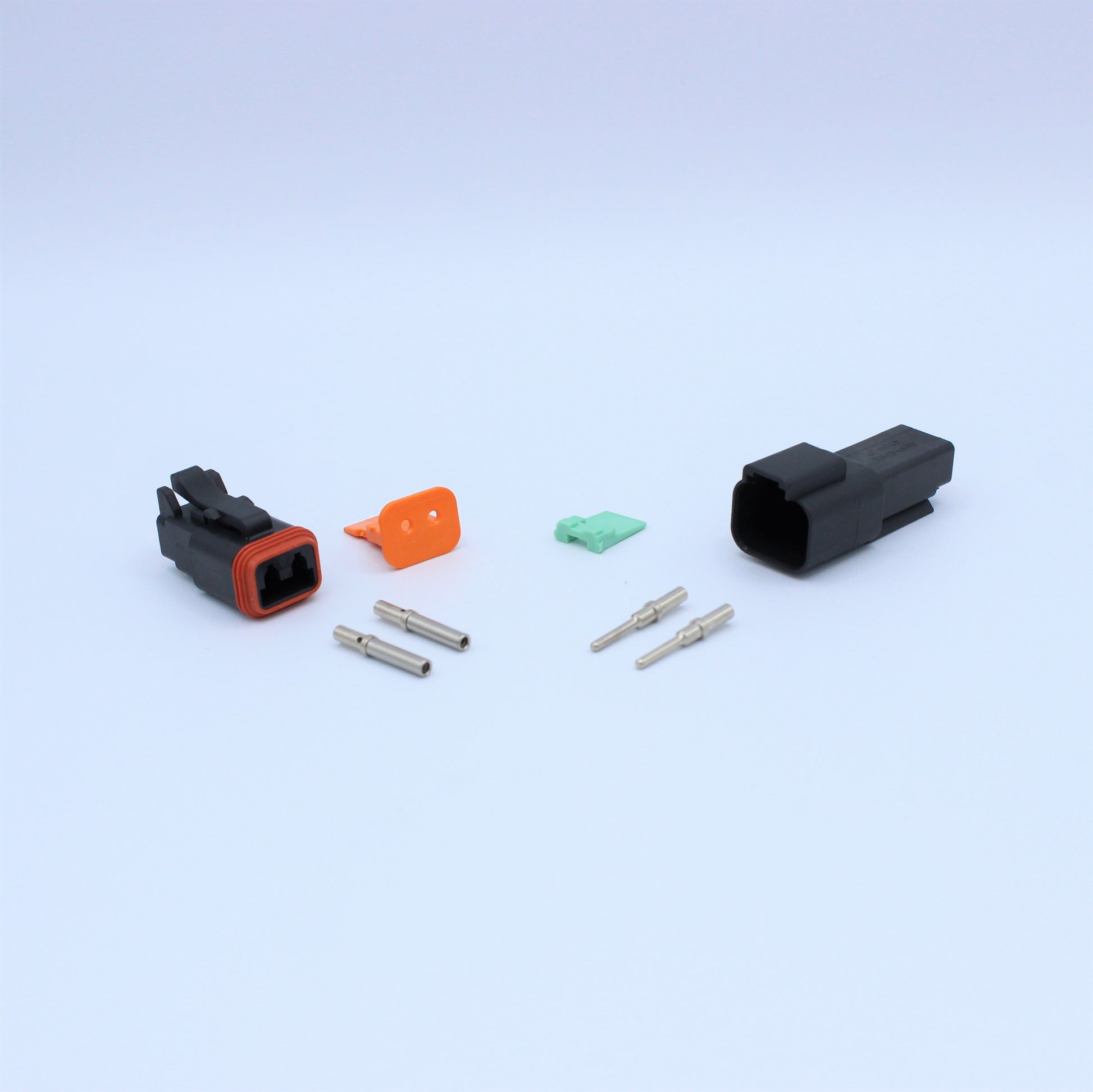 The standard in aftermarket universal application connectors is Deutsch DT or Amphenol AT. They are completely interchangeable, and our kits use a mix only authentic products of both lines to offer the best combinations.
