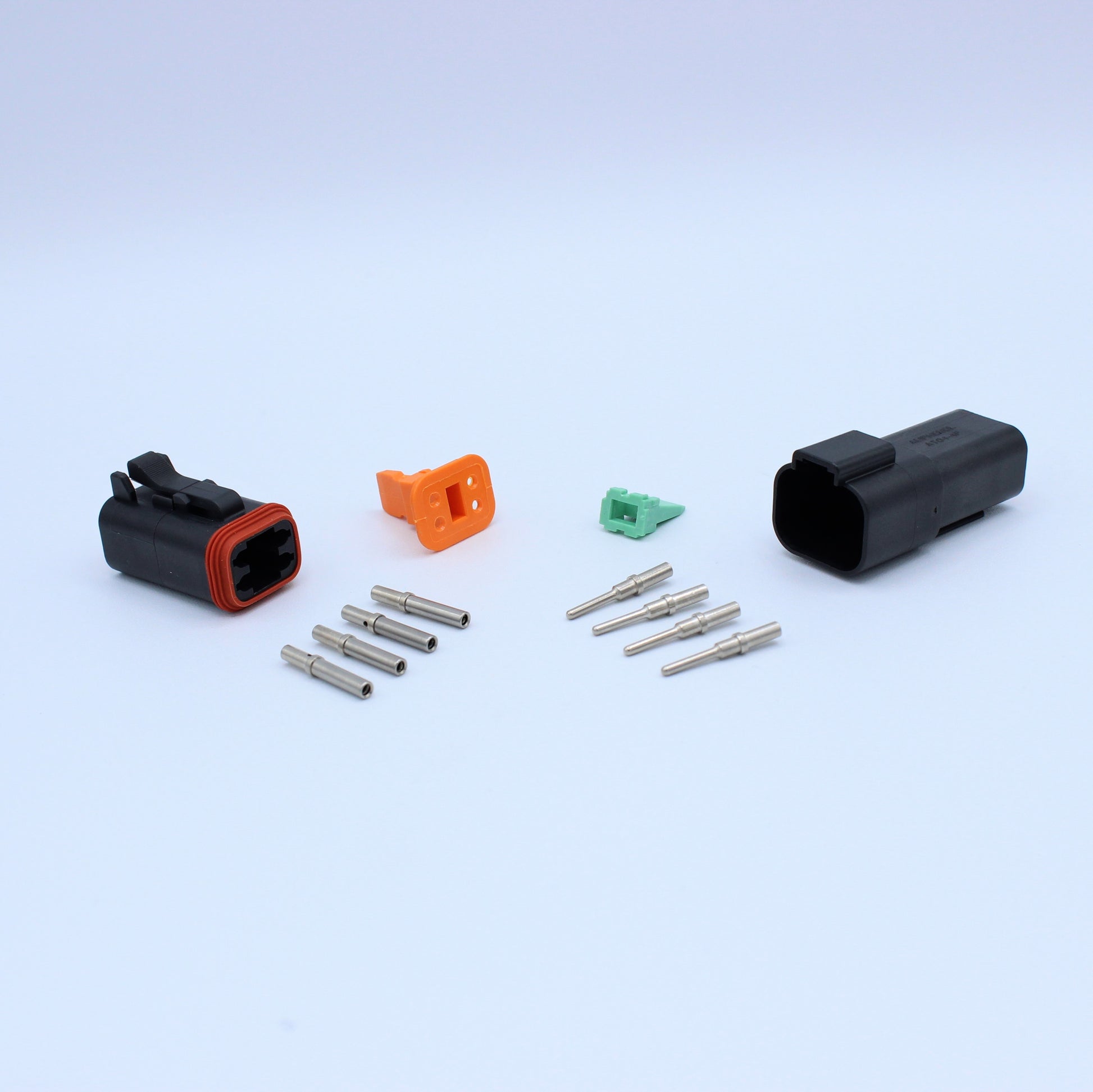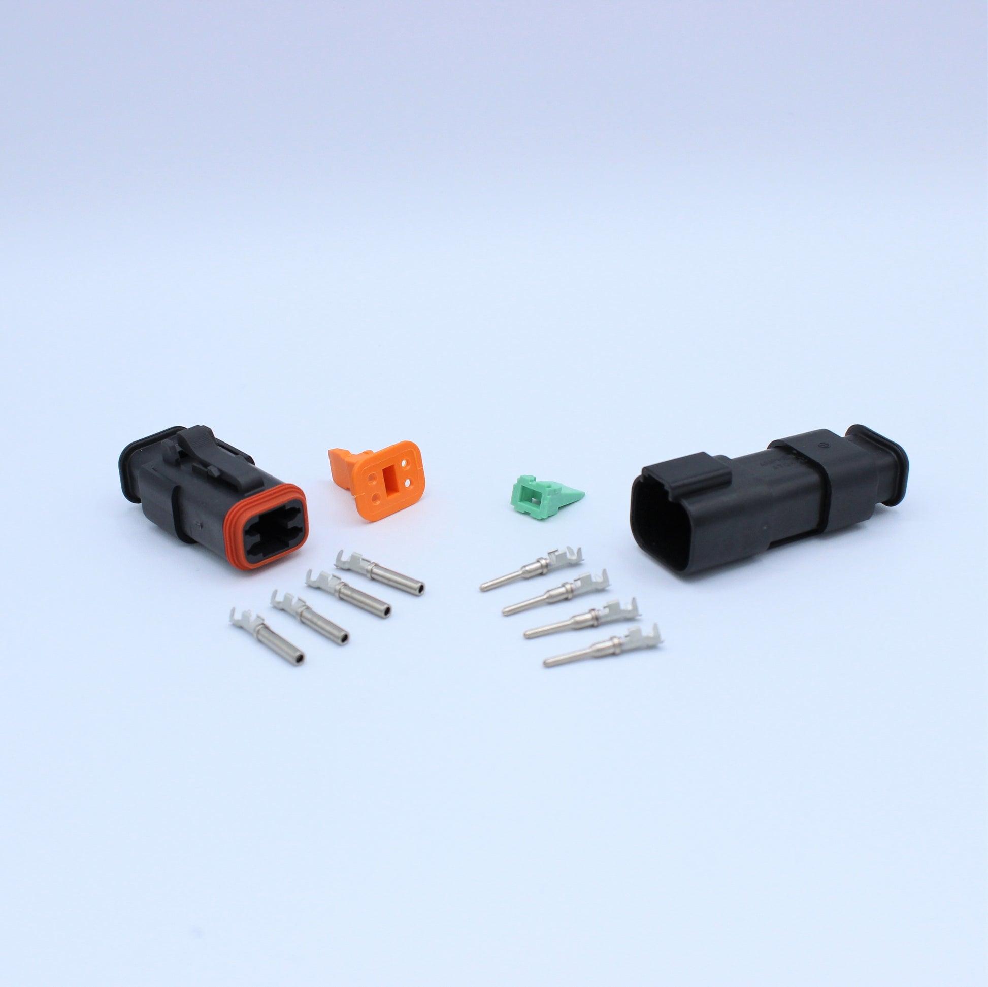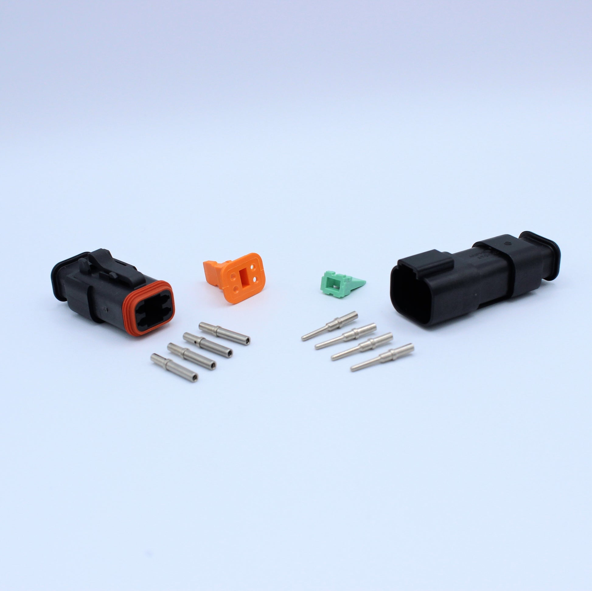 The standard in aftermarket universal application connectors is Deutsch DT or Amphenol AT. They are completely interchangeable, and our kits use a mix only authentic products of both lines to offer the best combinations.