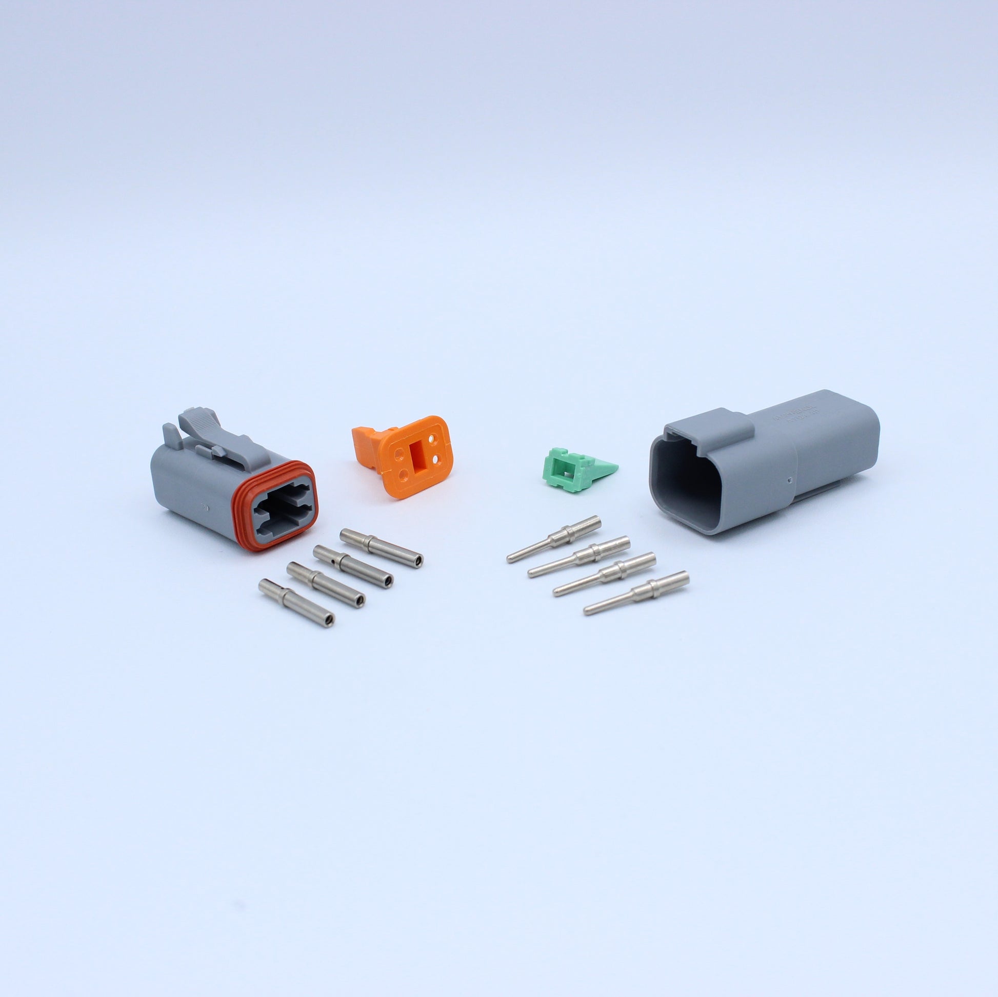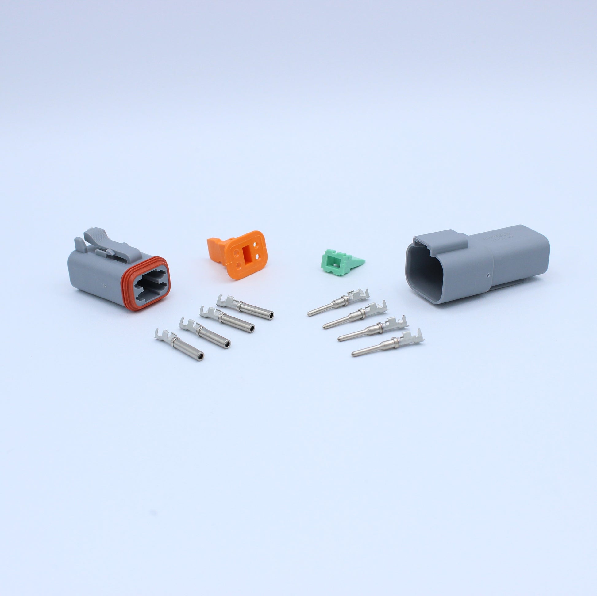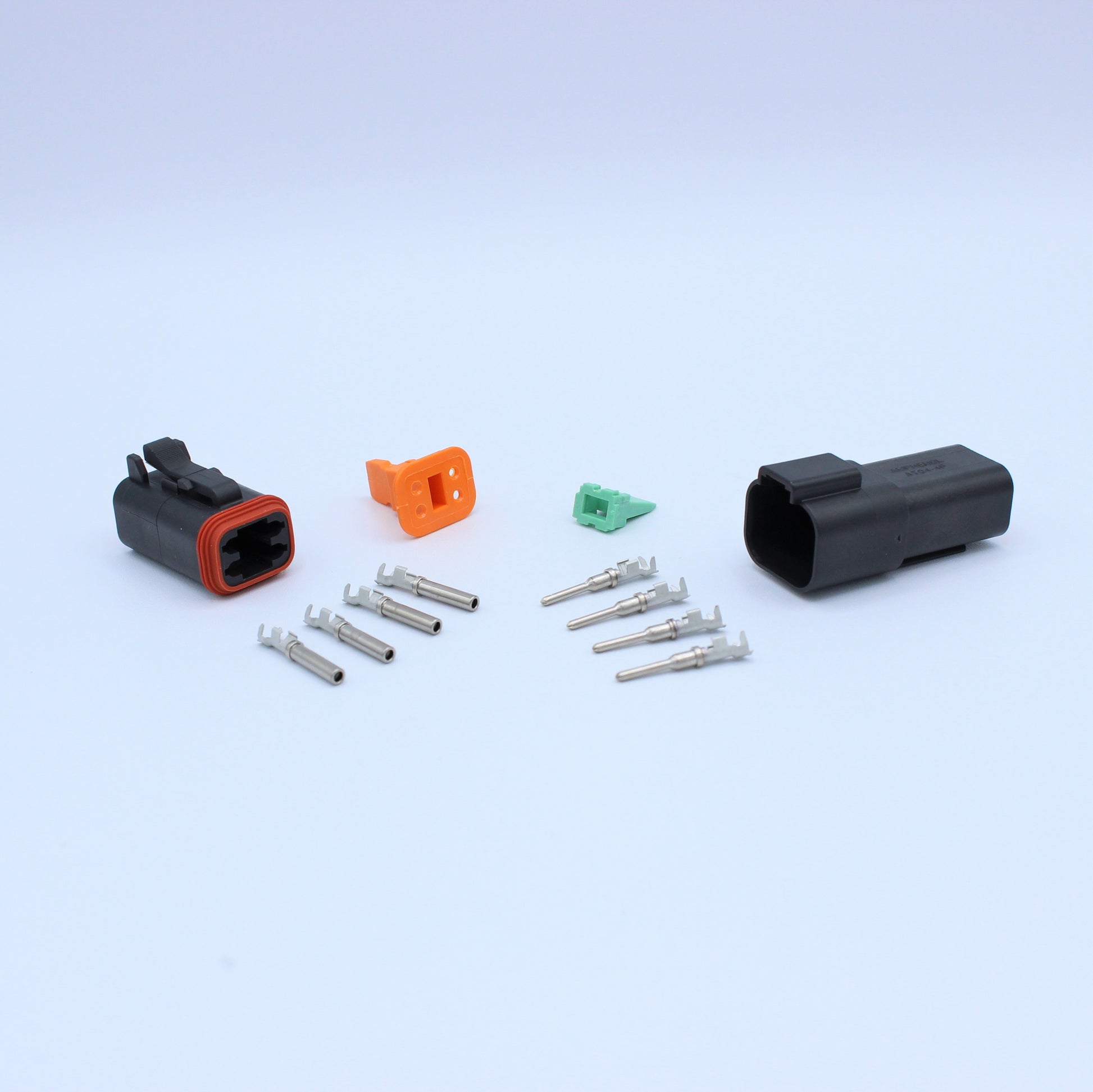 The standard in aftermarket universal application connectors is Deutsch DT or Amphenol AT. They are completely interchangeable, and our kits use a mix only authentic products of both lines to offer the best combinations.