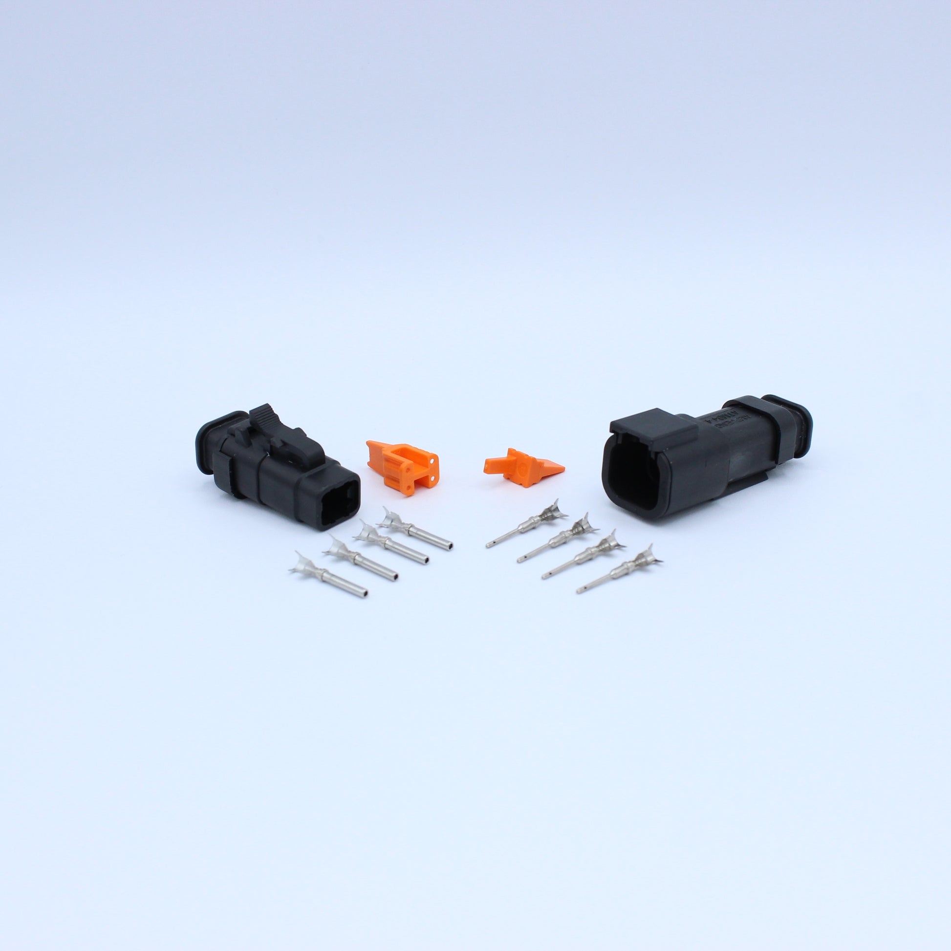 The standard in aftermarket universal application connectors is Deutsch DTM or Amphenol ATM. They are completely interchangeable, and our kits use a mix only authentic products of both lines to offer the best combinations.