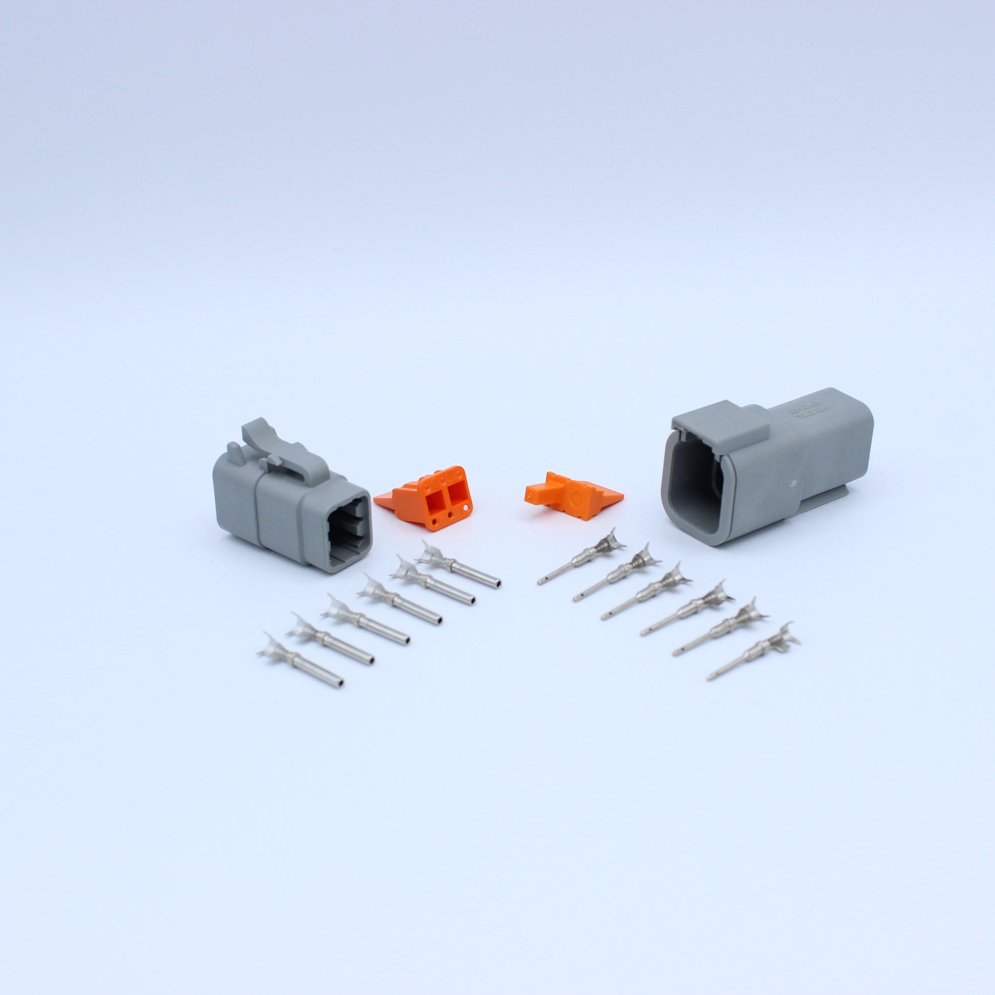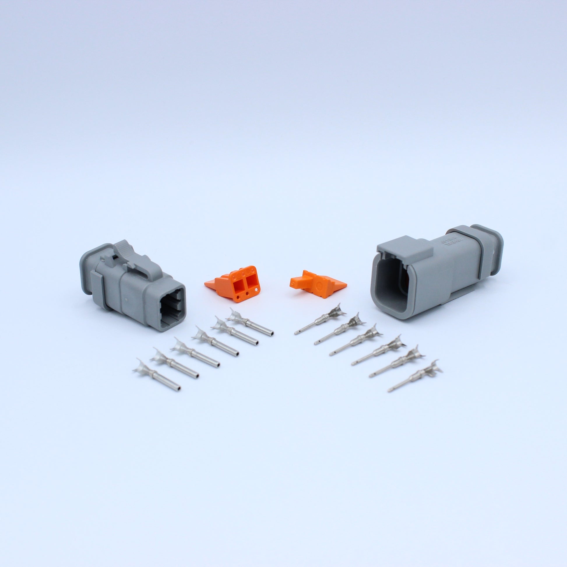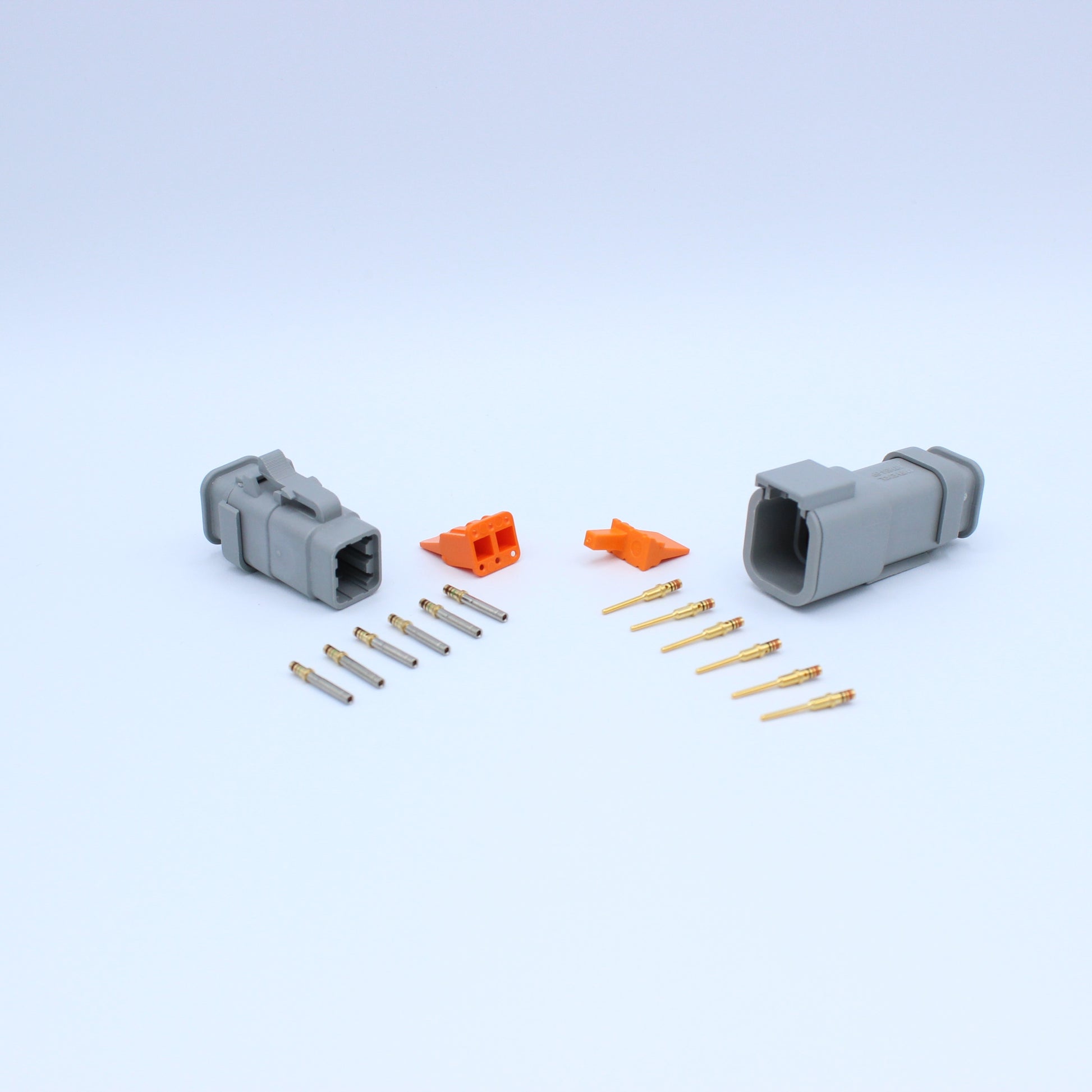 The standard in aftermarket universal application connectors is Deutsch DTM or Amphenol ATM. They are completely interchangeable, and our kits use a mix only authentic products of both lines to offer the best combinations.