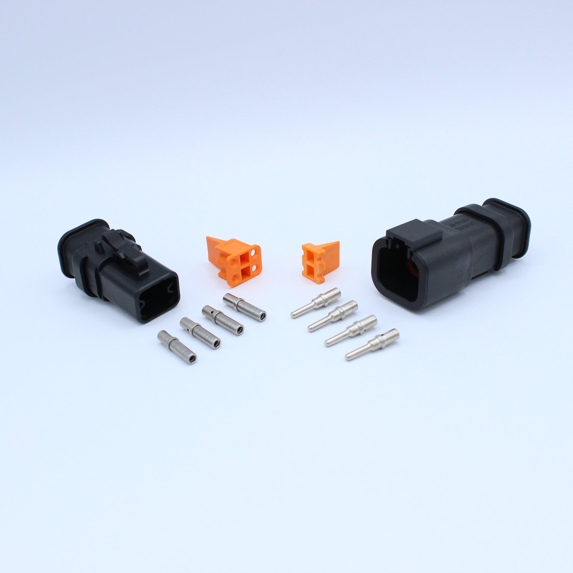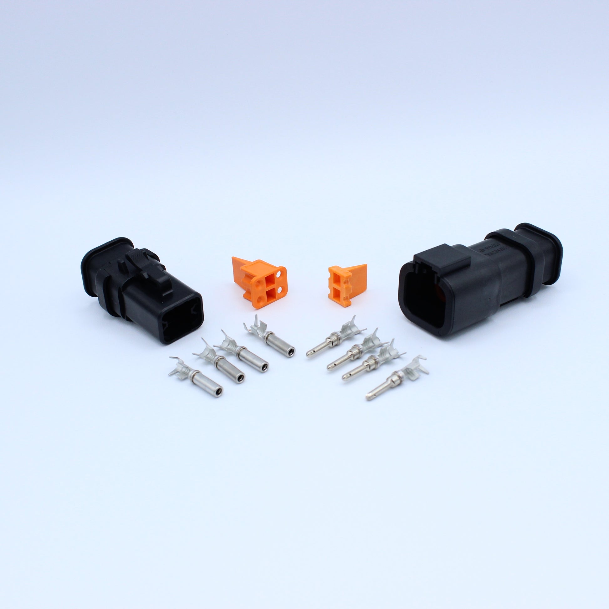 The standard in aftermarket universal application connectors is Deutsch DTP or Amphenol ATP. They are completely interchangeable, and our kits use a mix only authentic products of both lines to offer the best combinations.